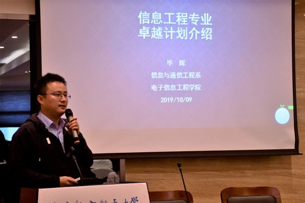 随后,刘冰和毕辉分别进行专业宣讲。刘冰首先对入选“卓越计划”的学生表示了祝贺,并强调“卓越计划”注重与企业合作的实践学习,同时也要注重基础理论知识的夯实;毕辉通过解读专业培养方案的和特定课程向大家介绍“卓越计划”,并提醒同学们注重培养沟通能力、国际化视野等方面的综合能力。