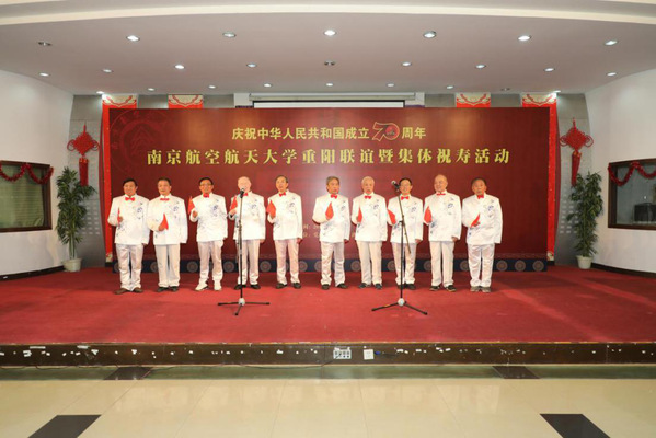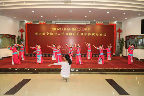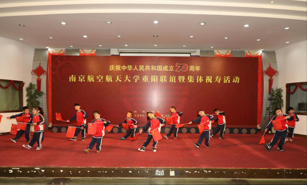 随后,举行了欢快而喜庆的文艺演出。南航幼儿园小朋友以及夕阳红艺术团离退休老同志们为大家献上了一个个精彩的节目。演出结束后,70、80、90、100岁寿星们济济一堂,参加了学校组织的集体吃寿面活动。“庆祝新中国成立70周年”重阳节联谊暨集体祝寿活动在一派热烈、温馨、喜庆、祥和的气氛中拉下帷幕。