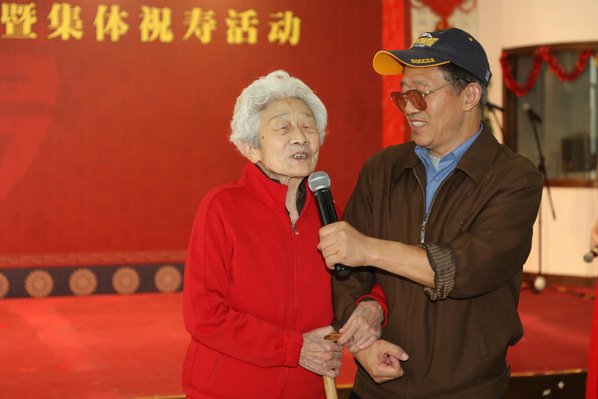 接下来,杭育新、李遥为100岁、90岁的老寿星们赠送祝寿礼品,与寿星代表共切贺寿蛋糕,与部处、院系领导共同与90、100岁老寿星合影留念。