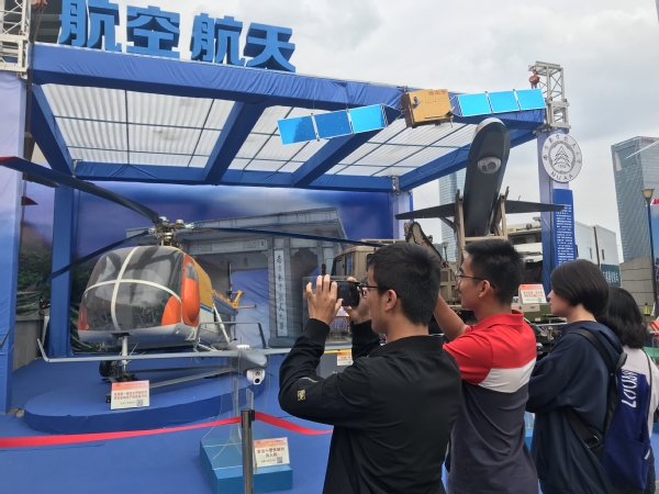 同学们在我校负责的航空航天展区纷纷驻足“打卡”