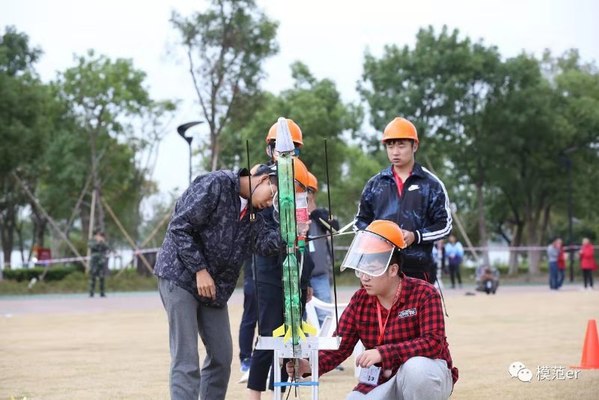 我校在模型水火箭助推航天器项目两个分组中均获得了一等奖。同学们自主创新,升级了开伞机构和分离机构,大大提升了发射成功率。