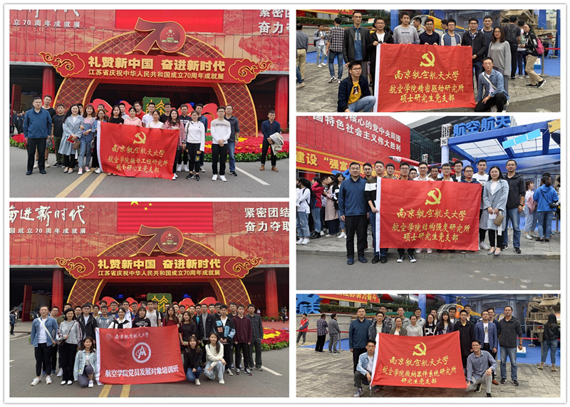 10月12日,航空学院四个研究生纵向党支部及发展对象共105人集体前往南京国际博览中心参观江苏省庆祝新中国成立70周年成就展,本次参观由研究生辅导员张利明、刘希以及青年教师兼职研究生辅导员毛春见带队。
