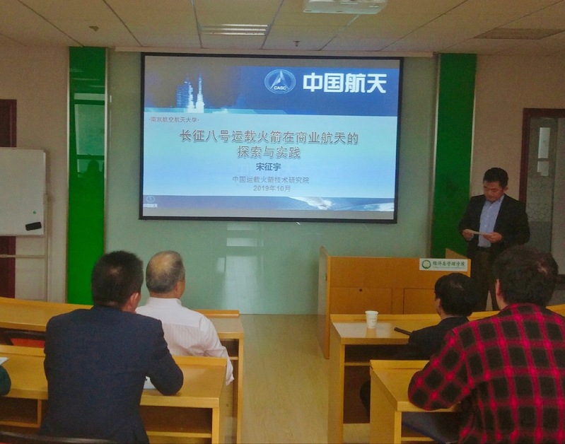 10月18日下午两点,中国运载火箭技术研究院总设计师宋征宇研究员受经管学院灰色系统研究所邀请,在经济与管理学院A0302室作了题为“长征八号运载火箭在商业航天的探索与实践”的学术讲座。经管学院院长周德群、教授刘思峰、方志耕、谢乃明、赵旭峰等管工系教师及部分硕、博研究生现场聆听了宋征宇研究员的报告,本次学术报告由院长周德群主持。