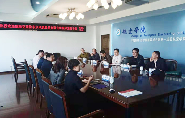 10月18日,航空学院61届校友、威海克莱特菲尔风机股份有限公司董事长盛才良率领公司一行5人应邀来到航空学院座谈交流。