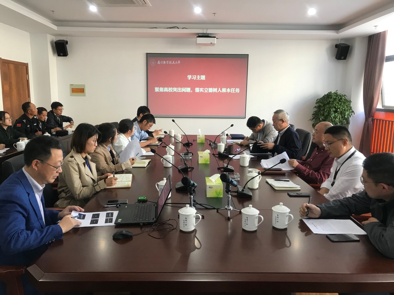 本次会议以“聚焦高校突出问题,落实立德树人根本任务”为主题,参会党员集中学习了《习近平在全国教育大会上的讲话》、《习近平在全国高校思想政治工作会议上的讲话》。在重点发言环节,校区党工委副书记贡海俊从“一个表态”、“一个判断”、“六点要求”、“八个相统一”等方面对习近平总书记关于教育的重要论述进行领学,并结合南航的办学理念、人才培养目标分享了学习体会;校区管委会副主任缪长宗回顾了新中国成立以来四次全国教育大会的会议精神,剖析了全员育人、全程育人、全方位育人的深刻内涵,结合天目湖校区运行的现状交流了心得体会。在研讨交流环节,校区管委会主任江波与参会党员分享了高校人才培养与立德树人的深刻内涵,提出要在管理岗位、服务岗位上主动扩大与学生的交流,在与学生的密切交流中加强对学生的正面引导,从而增强育人的实效性;王伟华从时间、范围、空间三个维度与参会党员分享了自己对“三全育人”的理解;殷凯结合当前时政热点与参会党员分享了自己对“厚植爱国主义情怀”的理解与体会。保卫处吴永祥、民航学院赵慧文、后勤集团贺淑琴等分别进行了交流发言。张新明最后总结指出,校区的管理、服务人员都是教育工作者,每项工作都与“育人”有关,我们的任何工作、包括大家的言行举止都会感染与影响学生,工作中要实现实践育人、治理有方、管理到位。