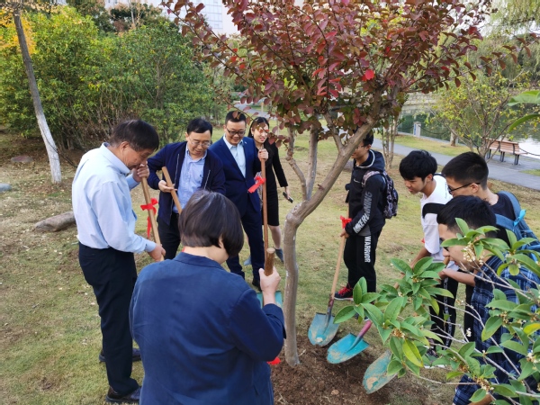会后,在副校长姜斌、科协秘书长刘双丽、航空学院副院长魏小辉和航空学院部分师生的陪同下,张统一院士为在我校“院士林”亲手种植的一株紫薇培土,并和大家合影留念。