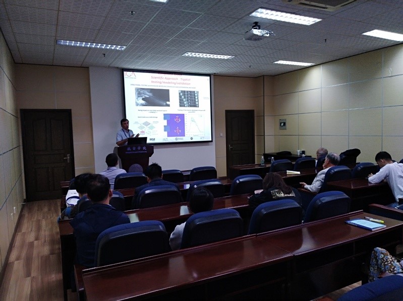 应我校航空学院机械结构力学及控制国家重点实验室高存法教授的邀请,法国图卢兹大学Bruno Castanie教授于10月20-23日访问我校,并于10月22日下午做了题为Discrete Modeling Strategies for Aeronautic Composite Structures: from Failure Scenario to Certification的学术报告。Castanie教授的报告介绍了航空复合结构的设计方法、离散建模手段以及实验测试技术。报告内容丰富、精彩生动,对我校相关科研工作具有借鉴作用。同时,Bruno Castanie教授还结合自己多年的研究经历,与现场听众分享了研究心得和体会。航空学院沈星教授主持了报告会。