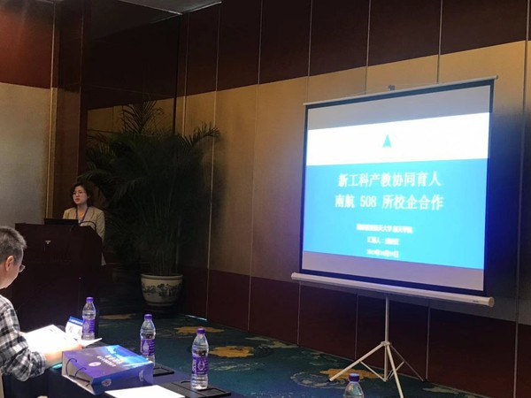 盛庆红围绕“新工科产教协同育人——南航与508所校企合作”做了发言,强调校企合作是新工科专业建设的必由之路,重点阐述了南航航天学院航空航天工程新工科专业在与508所建立的校企合作平台的建设及建设成效,同时实现了青年教师和专业学生的工程实践能力的培养。