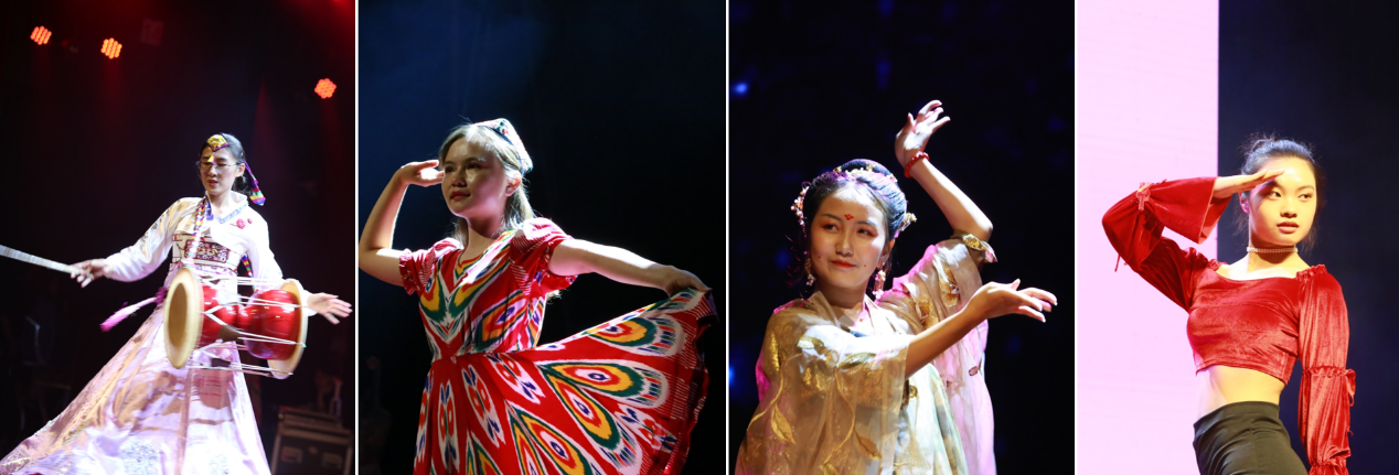 接下来,阿伊提拉·买买提、龙双杰等同学带来了大鼓舞、新疆舞、古典舞、韩舞的舞蹈串烧,展现了计算机学子多才多艺的一面。在第三篇章的最后,修立琨、刘畅带来的电影配音秀表演再现了《汽车机器人》、《海绵宝宝》等经典电影片段,尤其是一段《我和我的祖国》更是将全场气氛推向了高潮。