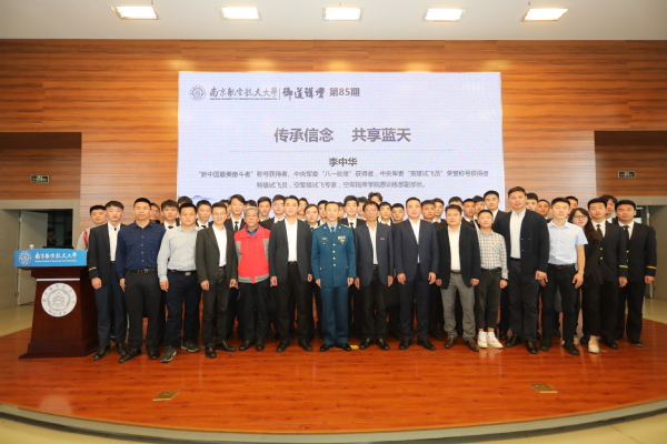 10月23日,我校79级校友、“英雄试飞员”、“八一勋章”获得者、“新中国成立70周年最美奋斗者”李中华做客我校御道讲坛,分别于将军路校区、天目湖校区做题为“传承信念,共享蓝天”的报告。校党委常委、宣传部部长王晖,学生处处长侍旭,马克思主义学院党总支书记徐川,民航/飞行学院全体领导,天目湖校区党工委、管委会全体领导以及包括民航/飞行学院在内的600余名师生代表参加了报告会。报告会由民航学院党委书记徐福民主持。