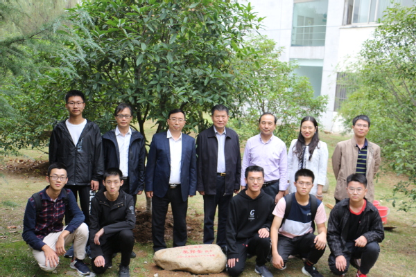 报告会前,樊邦奎院士为在我校“院士林”亲手种植的一株桂花进行了培土,并和大家合影留念。