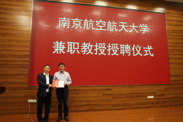 报告会前举行了樊邦奎院士受聘兼职教授聘任仪式,姜斌为樊邦奎院士颁发聘书并佩戴校徽。姜斌代表学校对樊邦奎院士受聘为我校兼职教授表示欢迎和祝贺,对樊邦奎院士在无人机侦察技术领域取得的研究成果给予了高度评价,希望樊院士能够继续加强对我校无人机领域科研和人才培养的指导,进一步促进我校的学科建设,共同推动无人机技术和产业的快速发展。