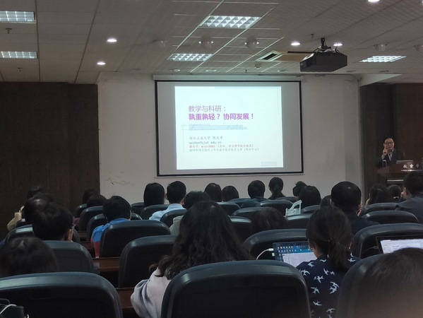 10月25日,浙江工业大学的陈庆章教授从青年教师科研中存在的主要问题出发,作了题为“教学与科研:孰轻孰重?协同发展”的报告;南开大学的宋峰教授从确定科研方向、科研的进程、科研方法、论文写作等方面入手,作了题为“青年教师如何提升科研能力”的报告。