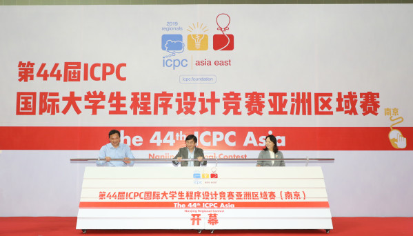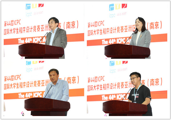 施大宁代表学校致开幕辞,他简要介绍了南航办学历史并指出,在网络强国战略思想的引领下,信息技术和信息人才正成为社会发展的重要力量。ICPC国际大学生程序设计竞赛对深化人才培养模式改革、提升一流人才培养质量具有重要作用,希望各兄弟高校以此次大赛的举办为契机,加强校际交流、增进兄弟友谊,进一步探讨教育教学改革的经验和做法,推动信息学科的建设和发展,共同为培养创新创业人才贡献力量。张巍代表江苏省经信委会发言,她表示,江苏的软件产业发展在全国遥遥领先,人才和创新是产业发展的灵魂,ICPC国际大学生程序设计竞赛为发现、培养、集聚更多优秀软件产业人才提供了一个良好的平台。江苏信息产业将不断加强产学互动,有力推动数字经济与实体经济融合发展。龚一钦代表江苏省青少年科技中心对本次大赛的顺利举行表示衷心的祝贺,感谢南航多年来对中心各项赛事举办的支持。浙江大学陈靖邦同学作为参赛学生代表发言,南航张宗杰同学作为裁判员代表进行宣誓。