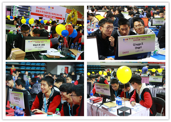 27日上午9时,比赛正式开始。比赛规定每支参赛队由3名学生组成,每队使用1台计算机进行编程。这考验着参赛队员的聪明才智和团队成员之间的合作精神。参赛队每正确完成一题,就会给其队伍发放一只代表该题颜色的气球。每队的得分由解答正确的赛题数量、答题时间等多方面因素决定。在比赛过程中,现场大屏幕实时公布所有队伍的进展情况,同时通过气球的颜色和个数,可以了解到身边其他参赛队伍的答题情况。由此可见,扎实的专业水平,良好的团队协作和强大的心理素质在该项大赛中缺一不可。