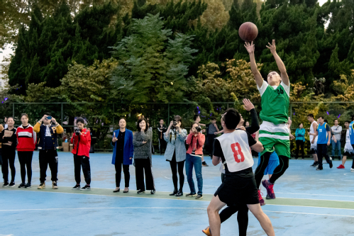 此次比赛延续往年传统,在每场比赛的中场休息时间,设置了女职工与领导干部定点投篮环节,得分经过计算汇入比赛总得分,决赛终场更有篮球宝贝表演、趣味投篮等小游戏。篮球小宝贝的精彩演出、教工们一个个完美的空心投篮和游戏参与者拿到小奖品后的笑逐颜开,为比赛增添了不一样的精彩。