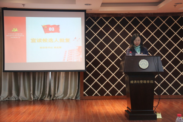 10月30日中午,伴随着嘹亮的国歌声,经济与管理学院第四届学生党总支委员会换届选举大会在学院A0305报告厅召开。学院党委书记焦宏图、副书记涂志宏、组织员袁颖、新一届学生党总支委员会候选人和全体学生党员出席大会。大会由第三届学生党总支委员田苑娜主持。