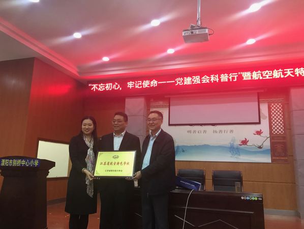 在溧阳天目湖校区,我校科协航空特色科技创新基地专家组组长、全国教学名师昂海松教授为天目湖师生做了《追梦蓝天——现代航空航天技术的发展》名家讲坛报告;在溧阳市别桥中心小学我校科协航空特色创新基地专家组副组长邓克绪研究员为小学师生做了“无人机关键技术的现状和发展趋势”的科普讲座,随后校科协秘书长刘双丽和江苏省航空航天学会秘书长张爱武共同为“江苏省航空特色学校”授牌,并捐赠了《问天文集》等科普读物和航模器材。活动中大家还实地调研参观了溧阳的江苏无人机特色小镇,认真听取了园区规划介绍,详细了解正在建设中的南航无人机研究院产业化基地建设情况,深入东翼航空、汉和航空生产车间,对无人机的性能、特色、市场应用情况进行了多方面的了解与交流。