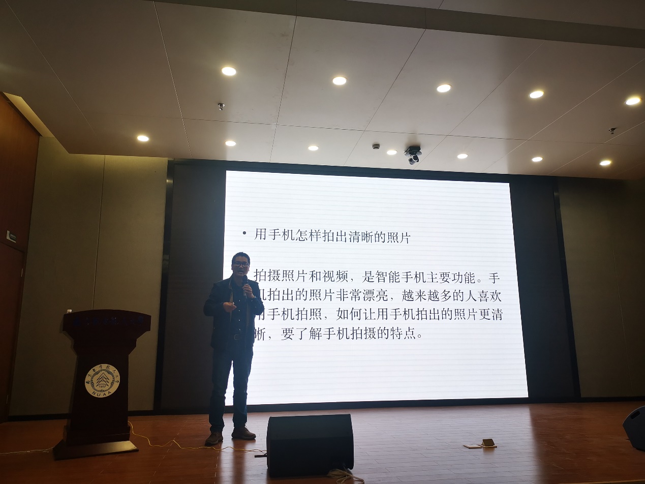 成立仪式后,泱波做了题为《有态度的摄影》主题讲座。泱波认为,摄影是一种“断章取义”的技术,当我们换一个角度看待世界,世界将变得更加奇妙。摄影因爱好而生,也因巧合而唯美。摄影令我们着迷的不仅是照片本身,更是其背后蕴含的故事。泱波也对新闻社成员提出殷切期望,希望同学们可以抓住校区的点点滴滴,捕捉身边的幸福与感动,并在新闻社的工作中不断提升自己,做好新闻人,讲好南航故事,为新校区的建设贡献自己的力量。