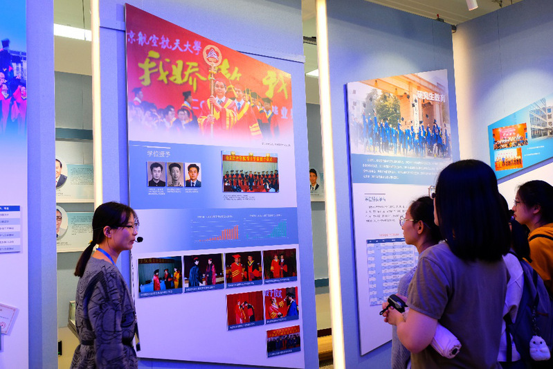 党日活动当天,民航学院本科生第二党支部书记带领党员、预备党员、发展对象及入党积极分子30余人来到校史馆,在讲解员陈纤带领下,依次参观了“发展历程”、“人才培养”、“科学研究”、“党建引领”四个展厅,铭记历史,共同感受南航建校六十七年来的风雨征程,同学们深深被南航精神所鼓舞。