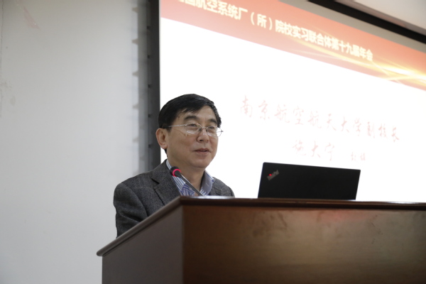 施大宁在致辞时指出,南航近年来高度重视实践教学工作,全面实施本科创新实践工程,深入推进创新创业教育,探索实施以企业项目为依托的“项目式”实习新模式,建立了以“成飞—南航‘智汇蓝天’”科创中心为代表的一批校企协同育人平台,在中国“互联网+”大学生创新创业大赛、“挑战杯”全国大学生课外学术科技作品竞赛等重要赛事中创造了“南航现象”。他表示,南航成绩的取得与航空航天企事业单位和兄弟院校的大力支持息息相关。当前党和国家对提高人才培养质量高度重视,教育部更是将实习管理工作提到了前所未有的新高度,他希望与会的校企代表深入研讨,积极交流实习管理的好经验好做法,共同探索“双一流”建设和“新工科”背景下的校企合作新模式。