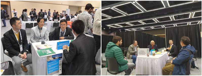 作为此次出访的重要目的,代表团成员在西雅图华盛顿州国际会展中心举行了经管学院专场海外招聘会。事先精心布置的展台吸引了众多北美名校毕业生和即将毕业的在校生。周德群介绍了学院的基本概况,详细解释了人才引聘的具体政策,徐海燕代表学院教授委员会向应聘者介绍了学院人才招聘录用和职业发展的模式,何沙玮作为年轻教师代表分享了海归博士在学院发展的心路历程。南航招聘现场给应聘者留下了深刻印象,在会场共进行初步面试近30人,此次招聘活动圆满完成了既定目标,扩大了在海外的影响力。