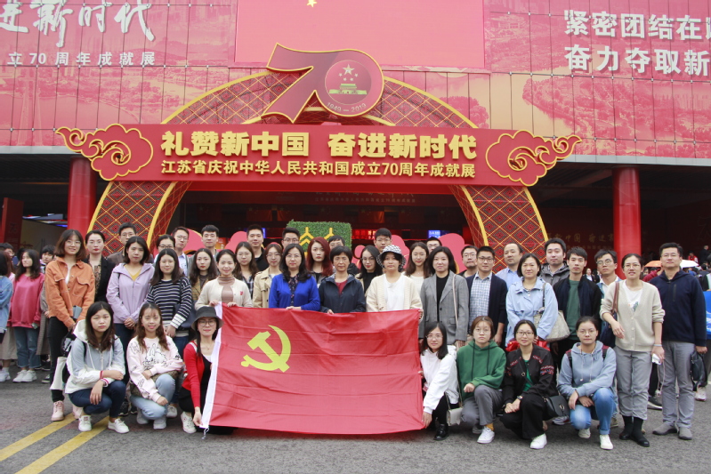 为庆祝中华人民共和国成立70周年,扎实推进“不忘初心、牢记使命”主题教育,经济与管理学院管工系、行政服务中心等教工党支部与各自联系的学生党支部开展了参观“江苏省庆祝中华人民共和国成立70周年成就展”活动。