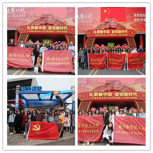 参观过程中,老师和同学们认真聆听讲解,仔细观看历史图片、短片视频、模型场景等,对中华人民共和国成立70年来取得的辉煌成果有了更为直观、全面、深刻的认识。大家一致赞叹祖国繁荣富强,江苏经济腾飞发展,表示此次展览振奋人心、深受鼓舞。教工党支部书记罗正军表示“展览办得非常好,一件件老物件、一组组老照片,都记录了江苏发展的步伐,唤起了我们心中的自豪感和继续投身江苏建设发展的使命感”。学生党员丁宇看到展览馆门口陈列着的飞行器模型,心中十分骄傲,他说“在中国高速发展的这些年里南航也在进步,能为国家的国防、航空事业进步做出贡献令我们非常自豪。”参加此次展览的师生党员们纷表示,将在今后的教学科研生活中,尽心尽职、发挥好新时代党员的先锋模范作用,为学校双一流建设作出自己的贡献。