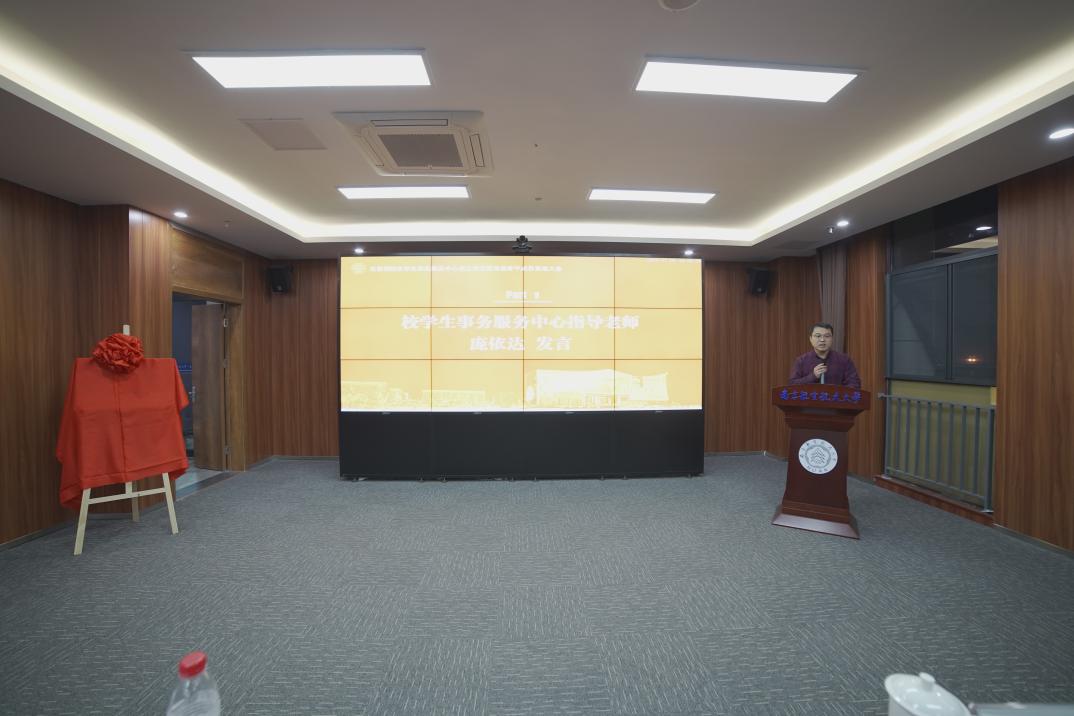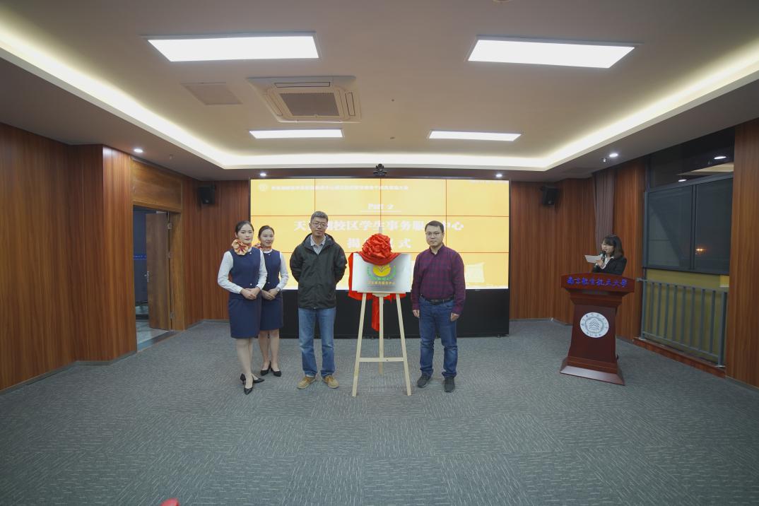 庞依达和天目湖校区运行保障办公室主任韩路共同为天目湖校区学生事务服务中心揭牌,标志着天目湖校区学生事务服务中心的正式成立。