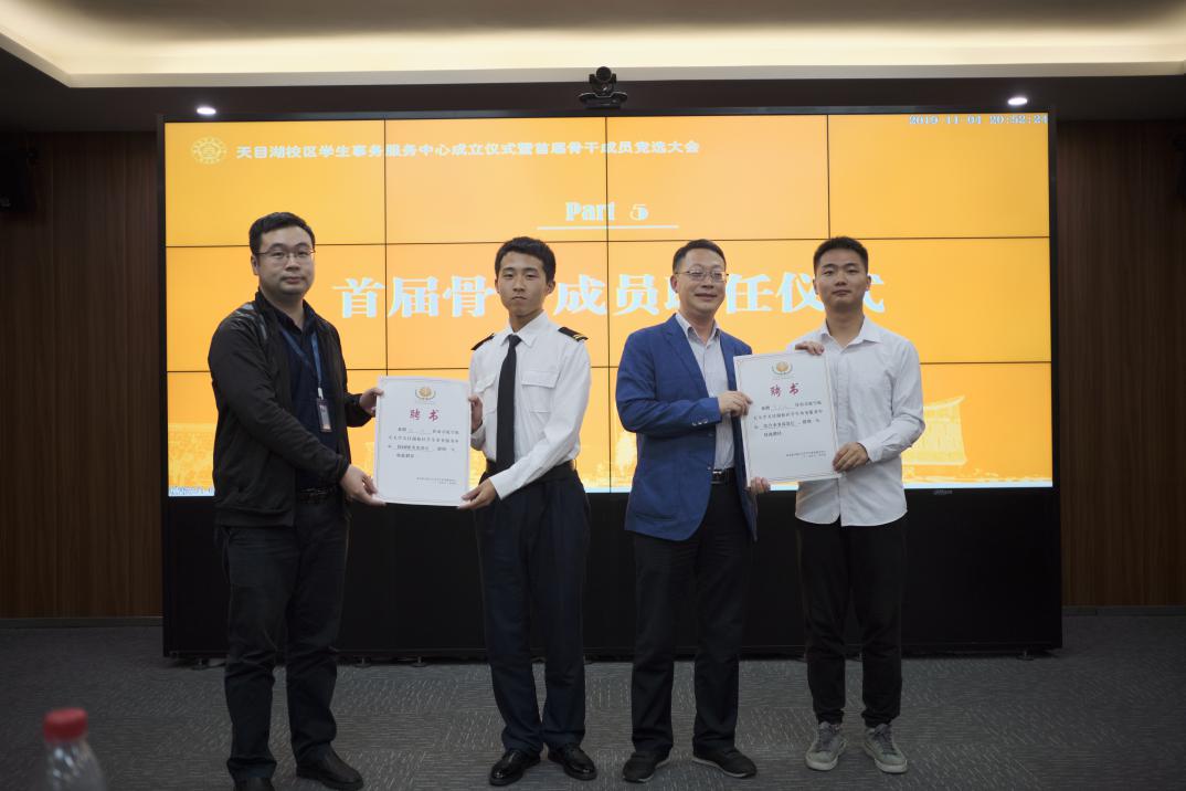通过演讲和评委打分,最终产生了周啸等9位天目湖校区学生事务服务中心首届骨干成员,到场嘉宾分别为成员们颁发了聘书。