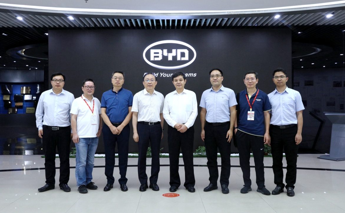 在比亚迪股份有限公司,聂宏一行参观了比亚迪展厅,了解了比亚迪自主创新研发的跨座式单轨云轨和胶轮有轨电车云巴等城市轨道交通的工程研究与应用成果。我校83级校友、比亚迪高级副总裁廉玉波介绍了公司在材料、电池、汽车、新能源、轨道交通、电力等方面发展情况与未来发展方向,希望母校在人才培养、重点产业领域的技术合作等方面给予更多的支持和帮助。