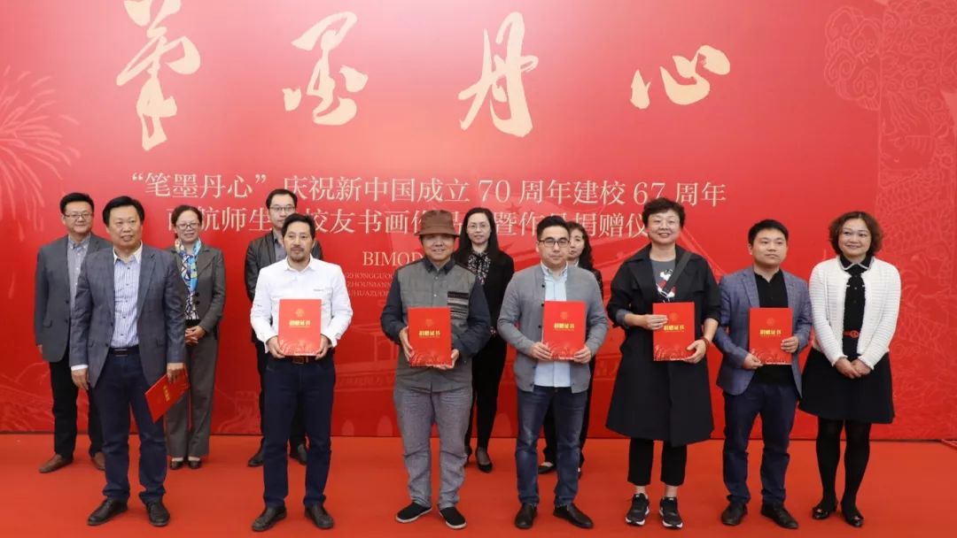 刘灿铭教授、张其凤教授、张利华教授、邱世鸿教授、吴维敏教授、王立庆教授等艺术学院师生和校友共同捐赠70余幅作品给学校,现场举行了捐赠仪式。