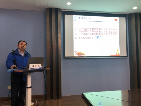 在“不忘初心、牢记使命”主题教育开展之初,马克思主义学院党总支聚合学院专家学者力量,成立了“不忘初心、牢记使命”主题教育宣讲团。宣讲团成立以来,以“理论学习有收获、思想政治受洗礼”为目标,积极主动投身校内外宣讲,为主题教育深入扎实开展做出贡献。截至目前,宣讲团成员已为我校党委中心组、党校、科协、教师发展中心、长空学院、民航学院、理学院、航空学院等校内外单位进行宣讲近20余场,受到广泛好评。