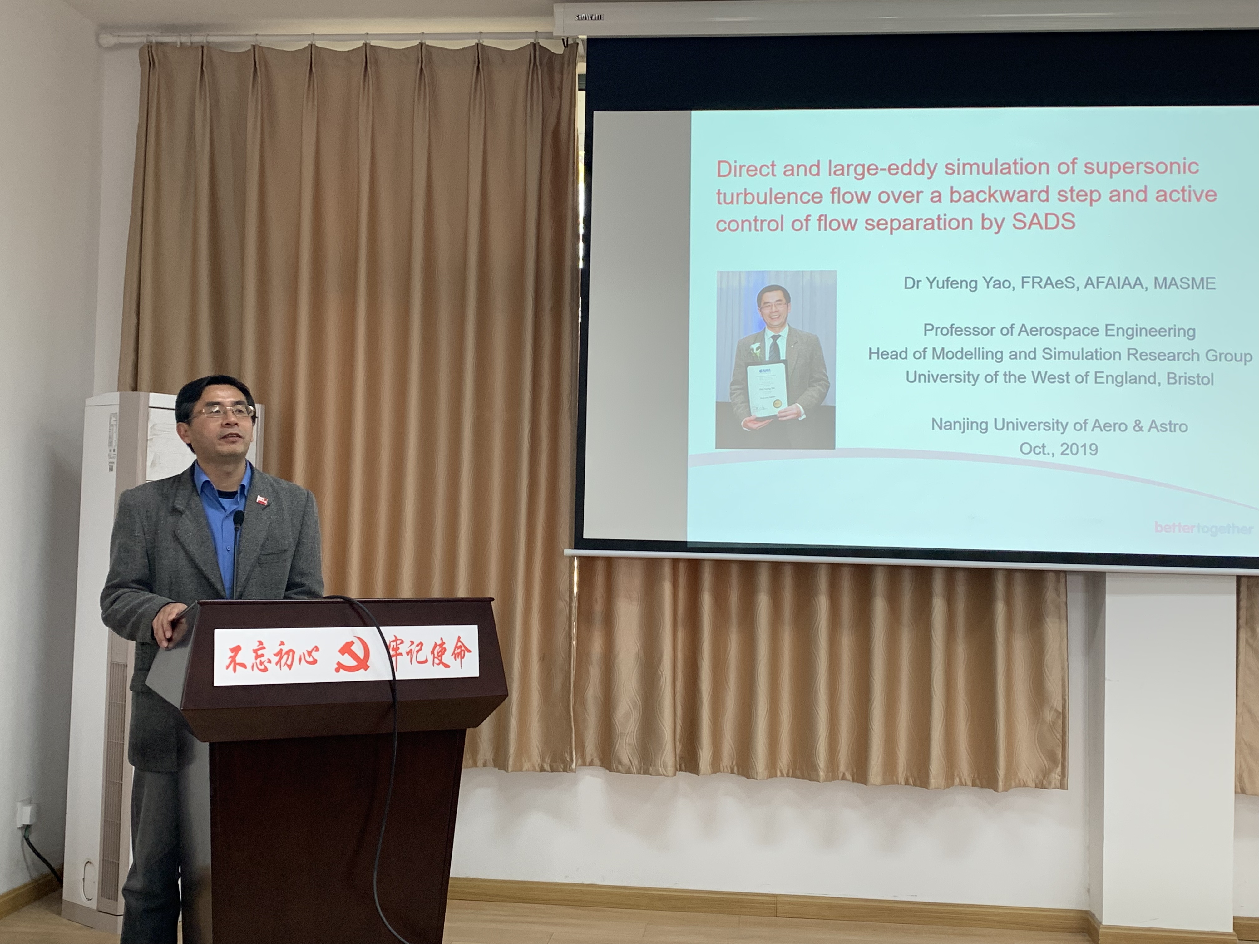 2019年10月30日,西英格兰大学教授姚宇峰应我校能源与动力学院邀请,在南航明故宫校区A10号楼619报告厅进行题为“Direct and large-eddy simulation of supersonicturbulence flow over a backward step and active control of flow separation bySADS”的学术报告。本次报告由副教授王继强主持。