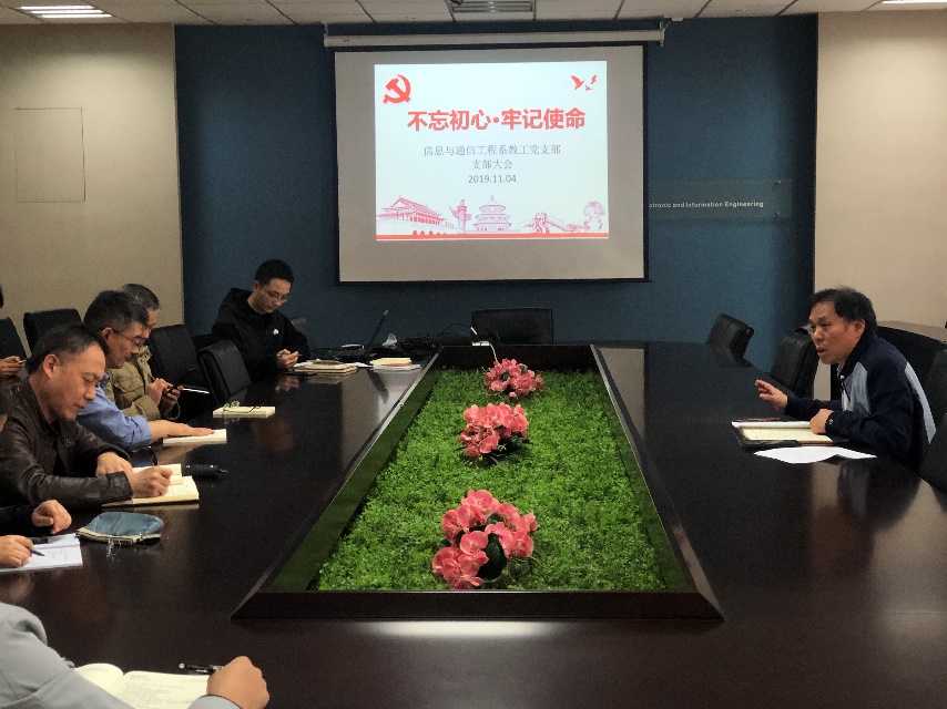 11月4日,电子信息工程学院信息与通信工程系党支部召开了“不忘初心,牢记使命”主题教育学习交流会,党委书记聂东林,党支部全体党员干部参加了学习交流。
