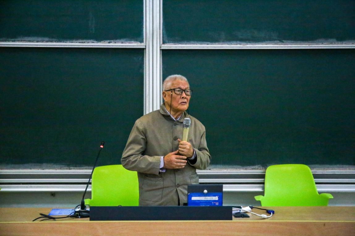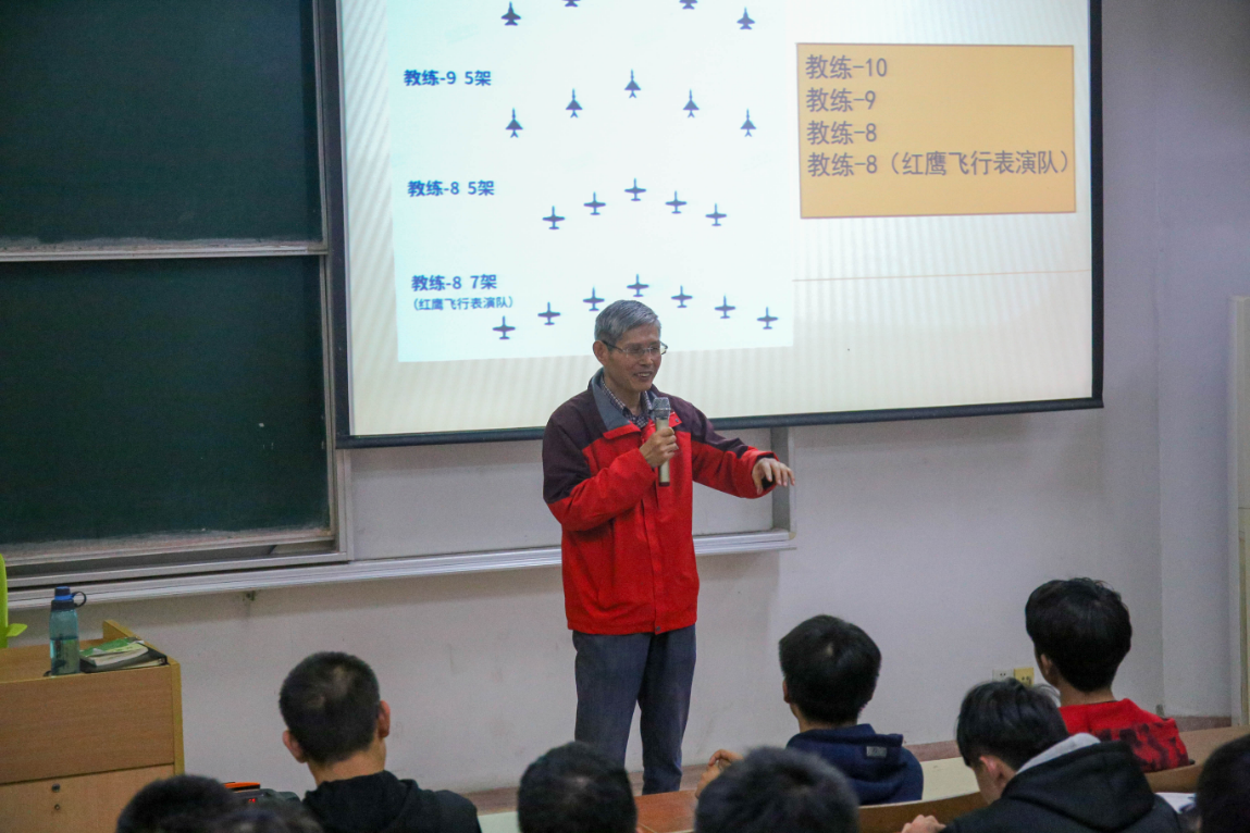 93岁的高龄乔新教授与唐正飞副教授联合为同学们介绍了国庆七十年阅兵式中的空中飞机梯队。空中护旗梯队最前方由三架直-8B和六架直-10组成,护送我们的党旗、国旗、军旗,谈到直-8,唐正飞动情地说“这款飞机是我们国家从测绘开始一步步设计研究制造出来的,过程非常艰难。”直升机的总师几乎全部出自南航,也让同学们都感到无比的骄傲与自豪,唐正飞鼓励同学们在南航学习直升机专业,这是全国唯一一个拥有直升机专业本硕博以及博士后培养的学校,在国内外都有很高的地位,希望更多的同学能投身航空事业。