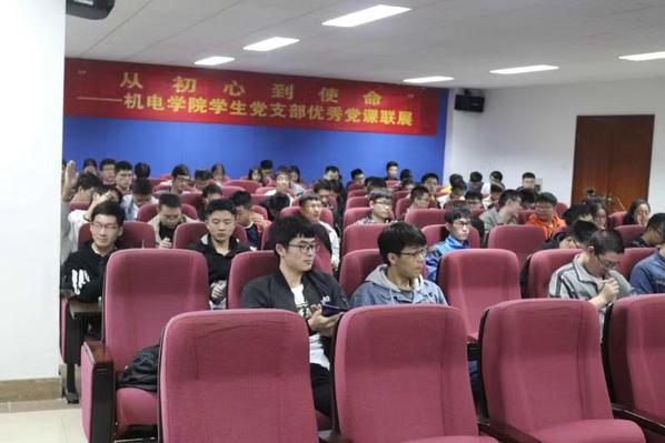 为深入贯彻落实习近平总书记在“不忘初心、牢记使命”主题教育工作会议上的重要讲话,按照《南京航空航天大学学生党支部关于开展“不忘初心、牢记使命”主题教育的实施方案》的统一部署,机电学院通过各学生党支部自评、推荐的形式挑选了三节优秀党课,于11月11日在明故宫校区15号楼522报告厅举办学生党支部优秀党课联展,从初心到使命为学生党员补充精神之钙。机电学院党委副书记徐俊珠、组织员昂洋以及2016、2017级全体本科生党员参加活动。