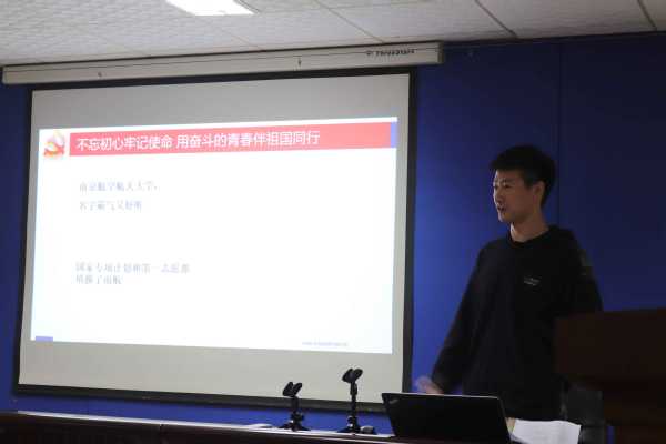 2016级本科生党支部党员骨干喻保山将他自身成长经历与航空报国的梦想结合在一起,向党员们分享了他选择南航、选择加入中国共产党、树立航空报国梦想的思想历程。他最后选择就业于中国商飞上海飞机制造厂,完成自己献身国防的使命,呼吁学生党员要永远对党忠诚,不忘初心,牢记使命,保卫祖国。