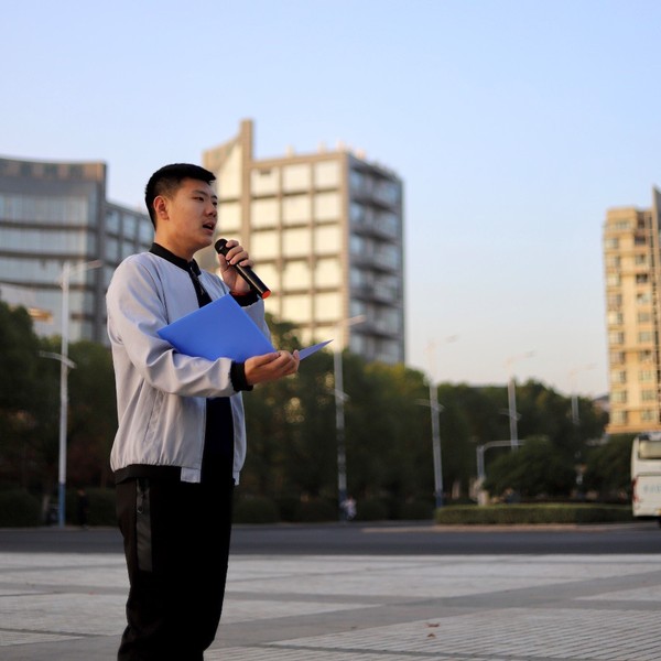 随后,2019级本科生团总支副书记马子扬进行了以“立鸿鹄志,做追梦人”为主题国旗下演讲。他回顾了入学以来自己的所见所感,运用自己对“不忘初心”的理解和习近平总书记在北京大学对青年的寄语,将青春与梦想作了完美的结合与诠释,并引用“我们都在奔跑,我们都是追梦人”的赠语与同学们共勉,号召同学们凝心聚力,坚定理想,用实际行动把握青春。