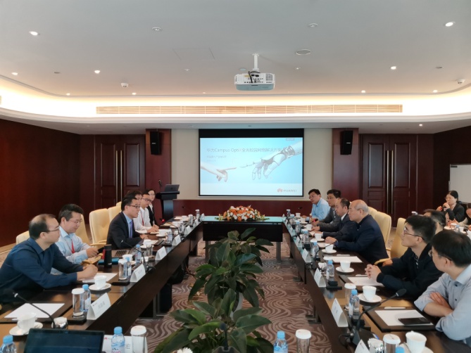 在华为技术有限公司,黄志球一行参观了华为松山湖基地,了解了Atlas人工智能计算平台的研发和应用情况。华为传送与接入产品线企业领域副总裁张晓亮介绍了“华为全光校园网络解决方案”及其在我校天目湖校区的应用建设情况,并就智慧校园、融合网络技术发展、计算机专业人才培养等方面与南航老师们进行了深入探讨。双方希望在前期合作的基础上,进一步加强在智慧校园建设、学科专业建设以及协同创新平台等方面的合作。