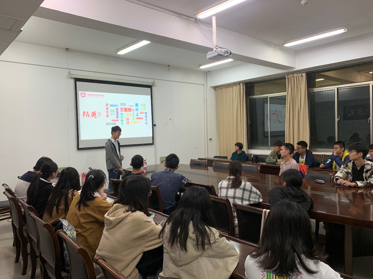 11月16日晚,材料科学与技术学院第十四期“学长学姐说”交流会在材料楼259会议室成功举行。为进一步发挥本科生朋辈导师的“传、帮、带”作用,培养低年级本科生独立思考,科学规划的能力,交流会上,学院0616100班班长,2016-2017学年、2018-2019学年国家奖学金获得者宗旸与低年级本科生分享他的国家奖学金之路。