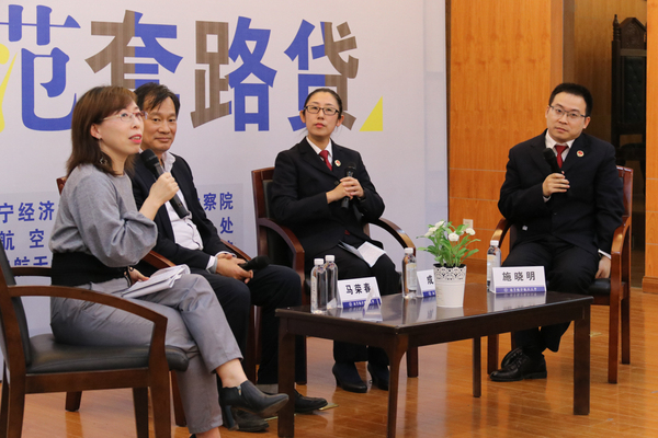 在“主题沙龙”环节中,南京市人民检察院检察官施晓明、南京江宁经济技术开发区人民检察院检察官成华、我校人文学院法律系马荣春教授为现场同学答疑解惑。同学们踊跃提出了自己关于“校园贷”和“套路贷”的问题。根据以往的办案经验,两位检察官认为,大学生与父母之间普遍缺少有关金钱、消费方面的交流,大学生对家庭收入情况了解不足,与父母的消费观念存在差距,这些都是导致大学生盲目相信并选择校园贷的重要原因。谈到“是否该杜绝校园贷”的问题,我校人文学院法律系教授马荣春认为,完全杜绝校园贷并不符合大学生的发展需求,也不符合经济发展的需要。但不少套路贷会披着“民间借贷”的外衣,大学生应主动学习相关的法律知识,提高鉴别“不良校园贷”能力,维护自身合法权益。