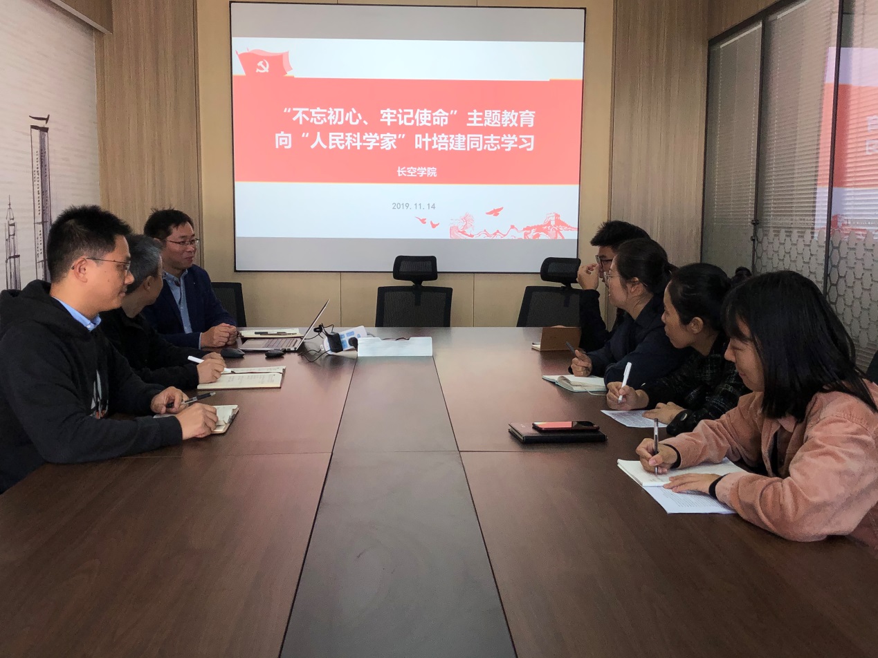 长空学院副院长张林首先传达了学校党委关于向“人民科学家”叶培建同志学习的决定,带领大家认真学习了“人民科学家”叶培建院士的先进事迹,集中观看了《中华人民共和国国家勋章和国家荣誉称号颁授仪式》、《叶培建院士在主题教育先进典型报告会上的报告》和央视《榜样》专题教育片。