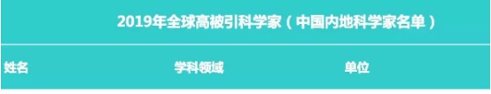 相关链接:2019年全球“高被引科学家”(中国内地和港澳地区)入选名单