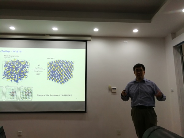 周建教授介绍了二维材料中的谷电子学和光力耦合方面的最新研究进展。他着重介绍了如何从理论上来实现光对材料变形和相转变的控制,并利用第一性原理计算实现这类现象。报告深入浅出,内容丰富且具有很强的理论指导意义,不仅使我校师生切实了解了相关研究方法和技能,而且拓展了研究视野。同时,周建教授还结合自己多年的研究经历,与现场听众分享了他在材料物理、低维力学等多学科领域的研究心得和体会。报告会由张助华教授主持。会后,周建教授与我校师生做了深入的交流和探讨及补充和解答。