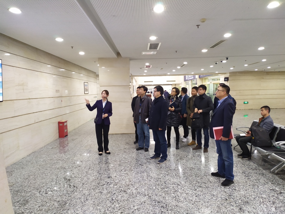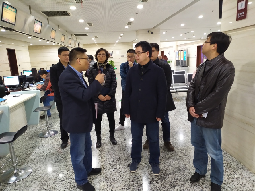 在专业讲解员的讲解下,王教授团队对南京市政务办的工作情况、机构设置作了充分了解。王教授不时向身边工作人员提问,政务办领导一一做了详细解答。