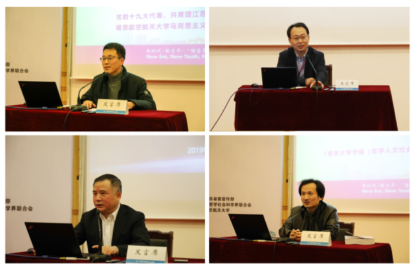 在专家主题演讲阶段,党的十九大代表、共青团江苏省委兼职副书记、我校马克思主义学院党总书记徐川,教育部“长江学者奖励计划”青年学者、首届“江苏青年社科英才”、扬州大学文学院院长陈军,江苏省工商联副主席、江苏省总商会副会长丁荣余,《南京大学学报(哲学人文社会科学版)》执行主编王浩斌分别作了题为“为江苏高质量发展积极贡献青年学者的力量”“勇做新时代追梦人”“江苏省区域竞争力提升的几个问题”和“学术研究方法与学术论文写作规范”的主题报告。