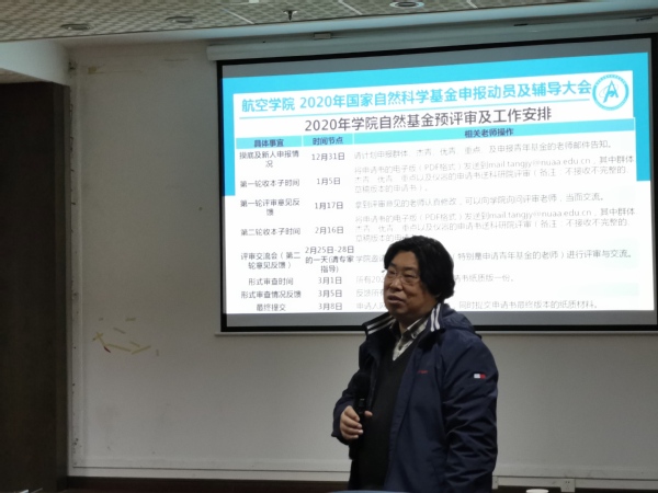 2019年11月27日下午,航空学院2020年度国家自然科学基金申报动员大会在明故宫校区A18号楼529报告厅召开。院长高存法教授、科研副院长招启军教授、院长助理王立峰教授及学院师生80余人参加了动员大会。会议由招启军主持。