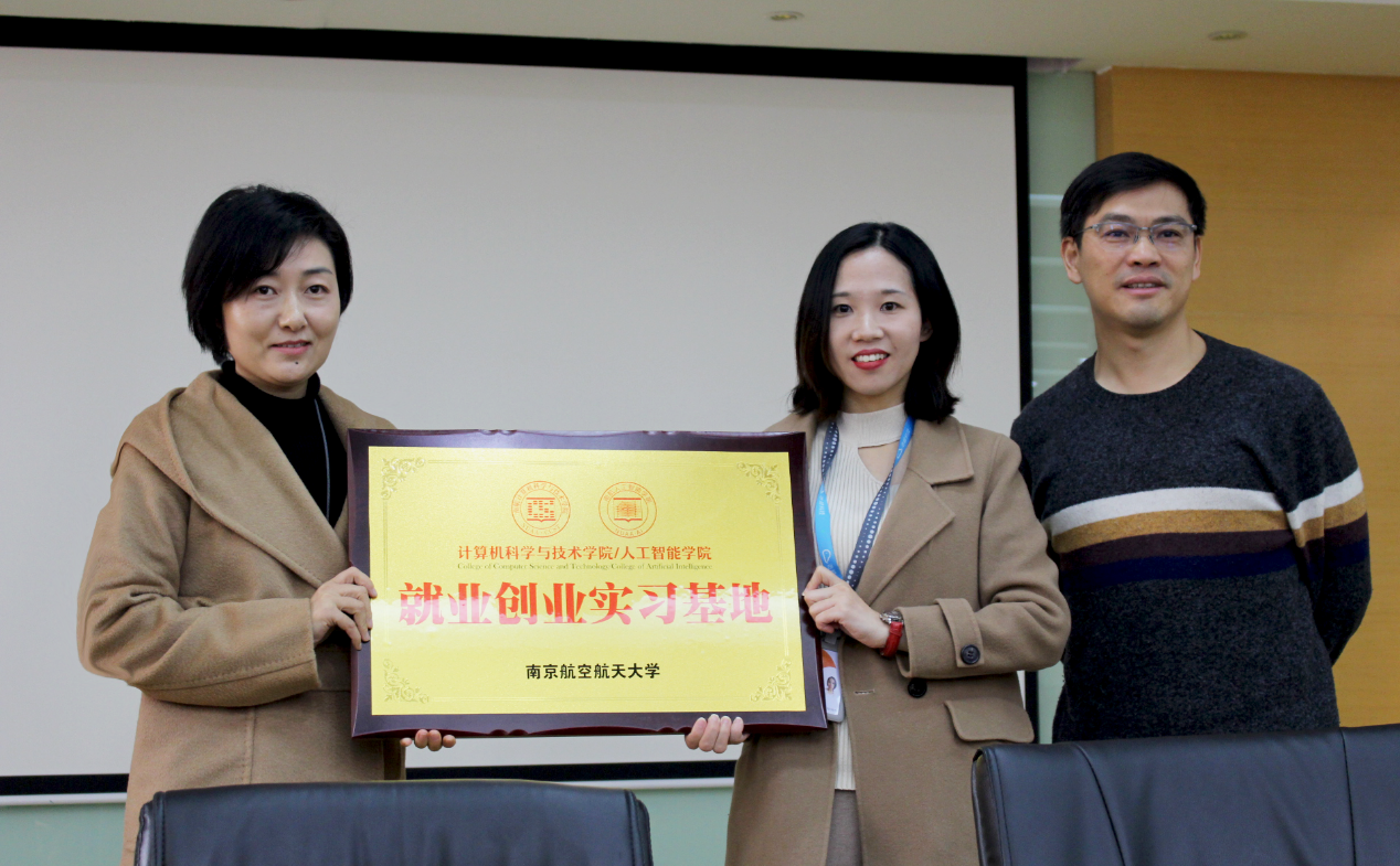 最后,浩鲸云计算科技股份有限公司招聘经理许小莉与计算机学院党委副书记管祎共同签订了《南航计算机科学与技术学院-浩鲸科技校企共建就业创业实习基地协议》,管祎代表学院向浩鲸云计算科技股份有限公司赠送了基地铜牌。