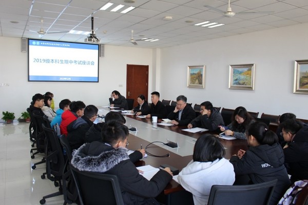 首先,赵蕴龙从整体结果、班级成绩对比、专业成绩对比、不同年级及学院间对比等方面分析了此次考试情况。也向与会学生说明了召开此次座谈会的目的,希望大家能够结合自身实际情况谈一谈目前在学习过程中遇到的问题。
